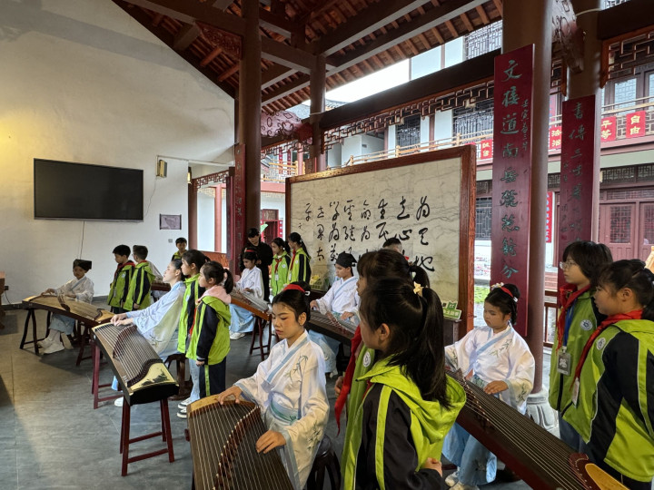 古筝清脆的音色在书院中回荡,一场特殊的音乐互动正在上演。古筝老师先带领视障学生合奏《沧海一声笑》,尽管他们看不见琴弦,却凭借着敏锐的听觉和不懈的练习,让那豪迈洒脱的旋律从指尖倾泻而出。这一刻,他们与音乐融为一体,用音乐诉说着内心的情感,展现出对生活的热爱与勇气。随后,视障老师一曲悠扬的《浏阳河》独奏,将现场带入诗意的江南水乡。音乐无界,音符化作无形的翅膀,载着孩子们穿越山河,领略中华音乐之美。